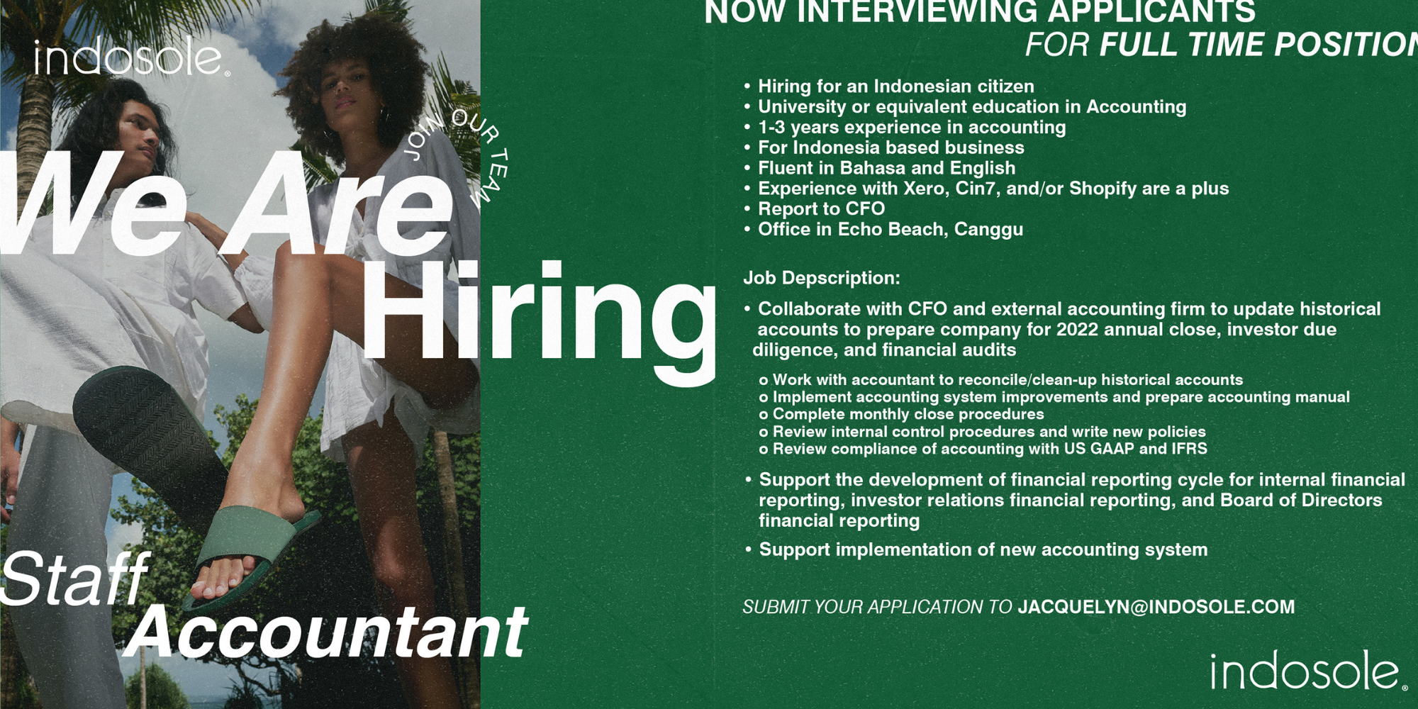 If you are interested in any of the positions listed here, please email your cover letter & resume to indo@indosole.com.