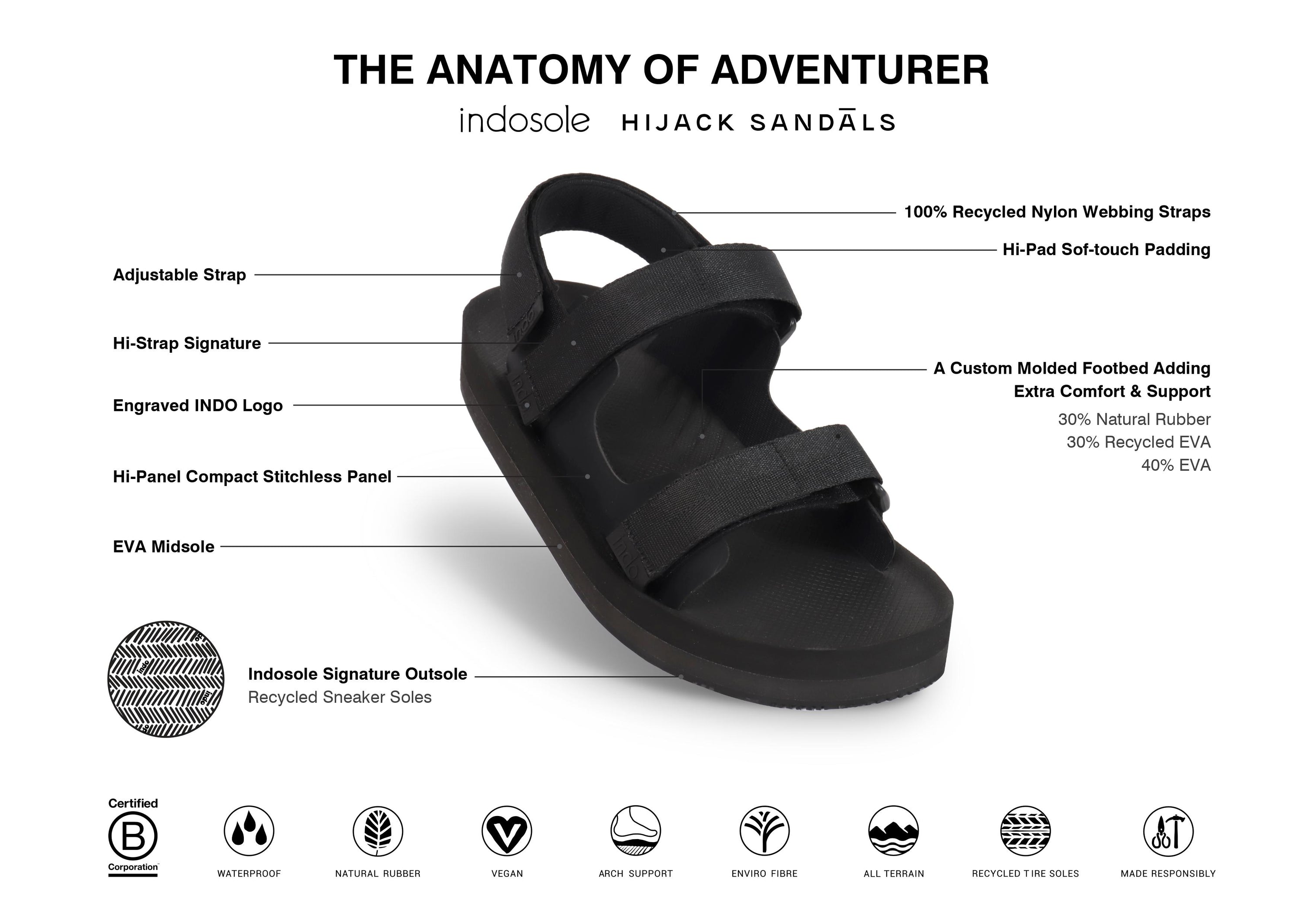 Embarking on a new adventure in collaboration with Hijack Sandals we could not be more thrilled to announce the Adventurer—a sandal that blends the iconic designs of Hijack with the sustainable soul of Indosole. It's a match made in footwear heaven! What sets the Adventurer apart is its meticulous craftsmanship and adjustable straps, providing unparalleled stability and support. Designed for the travel bug cruising the coliseum in Rome, the nature lover exploring forests and coastlines , the Adventurer will keep your feet secure and comfortable for all your adventures.